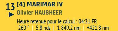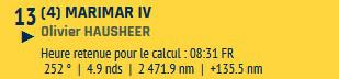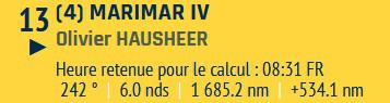 Petite mention spéciale pour Olivier Hausheer (Marimar IV) habitué de la Transquadra en double et en solo cette année : il ferme la marche suite à des soucis de pilote dès le premier jour de course, mais le marin Suisse reste proche du peloton : courage Olivier !