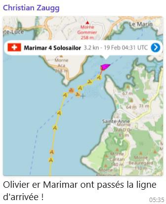 Et voilà, une Transquadra difficile, compliquée, musclée, s'achève pour Olivier. Effectivement, sans mode vent de l'auto-pilote, par des conditions quasi dantesques et une voile endomagée et un hauban à souci, Olivier a ralié l'arrivée. Un tout grand