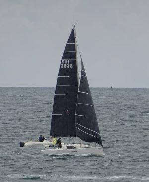 Jean-Yves court en solo croisière sur un First 31.7. Il est juste derrière Olivier.