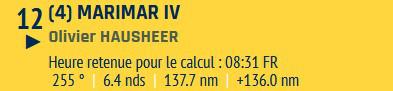 Petite mention spéciale pour Olivier Hausheer (Marimar IV) habitué de la Transquadra en double et en solo cette année : il ferme la marche suite à des soucis de pilote dès le premier jour de course, mais le marin Suisse reste proche du peloton : courage Olivier !