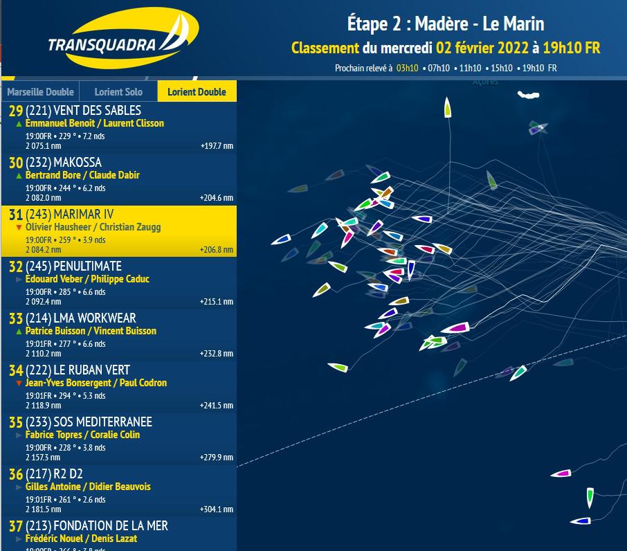 J5 - 2 février 2022. Positions à 19h10