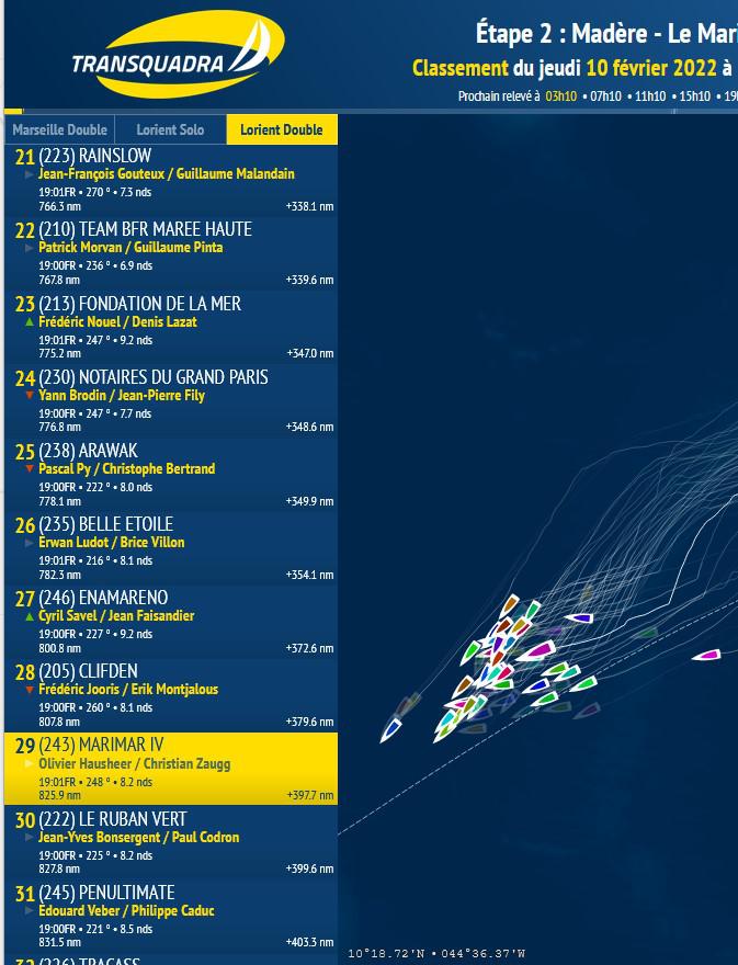 Position de nos quadras à 19h10 - à 825 nautiques