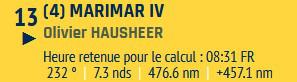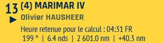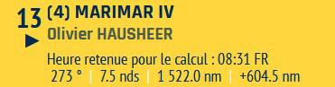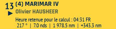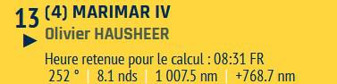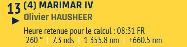 Petite mention spéciale pour Olivier Hausheer (Marimar IV) habitué de la Transquadra en double et en solo cette année : il ferme la marche suite à des soucis de pilote dès le premier jour de course, mais le marin Suisse reste proche du peloton : courage Olivier !